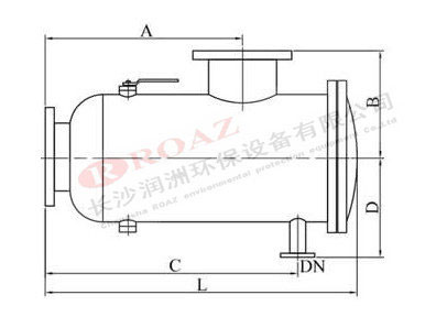 型號 L(mm) A(mm) B(mm) C(mm) D(mm) 排污口DN 流量(T/h)